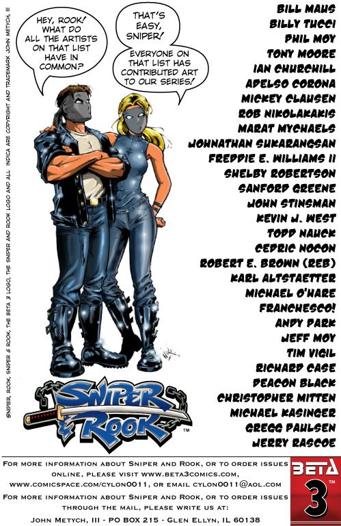 When I first started working on comics, I was using AOL. There were a few comic related message boards. That is where I met John Meytch and his book Sniper and Rook. I have been trying to get those characters into a book with mine for over 10 years. It is finally going to happen.