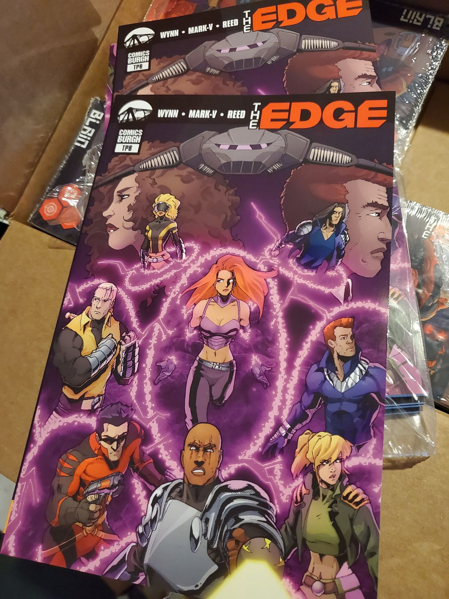 Kickstarter items are almost complete. The Volume one trade arrived. The Volume two trade should be here shortly. That only leaves the stickers. Then the fun of packing and shipping begins.